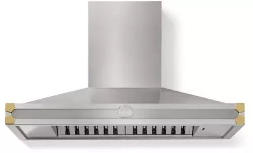 43 Inch Wall Mount Chimney Range Hood with Four Speed Variable Motor, Remote Control, Halogen Lights, Dishwasher Safe Filters and 600 CFM: Stainless Steel with Stainless Steel and Polished Brass TrimRead More