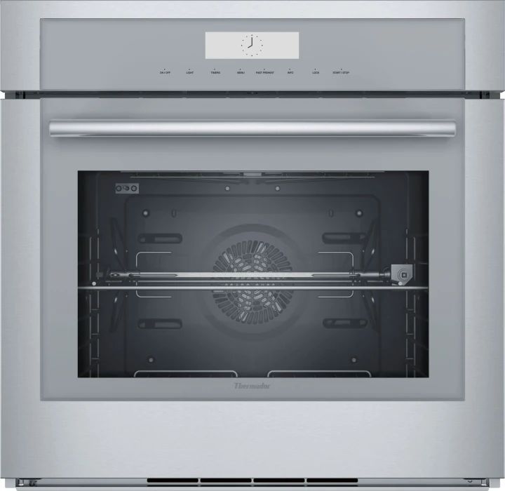Thermador Masterpiece Series MED301WS 30 Inch Single Wall Oven with Self-Clean, Hydraulic SoftClose® Hinges, 16 Cooking Modes, Meat Probe, Rotisserie, Halogen Lights, Telescopic Racks, Wi-Fi and Sabbath Mode Cutout Width: 28 1/2 Inch Cutout Depth: 23 1/2 Inch Cutout Height: 27 Inch Capacity: 4.5 Cu. Ft. Proof Mode: Yes Self-Cleaning: Yes Temperature Probe: Yes
